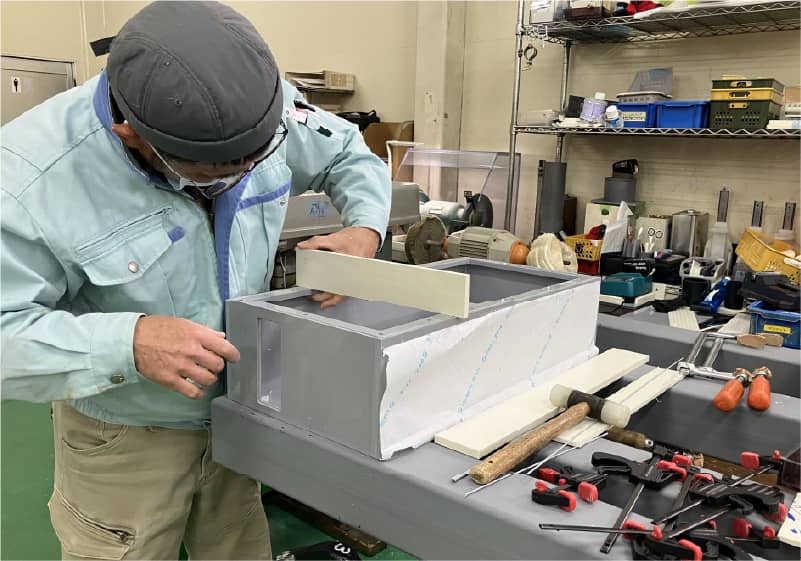 Introduction 03組み立て切断・切削・曲げ加工した板を骨組みに合わせ組み立てます。段差無く組み立てることが美しい仕上がりに繋がるので慎重に行います。